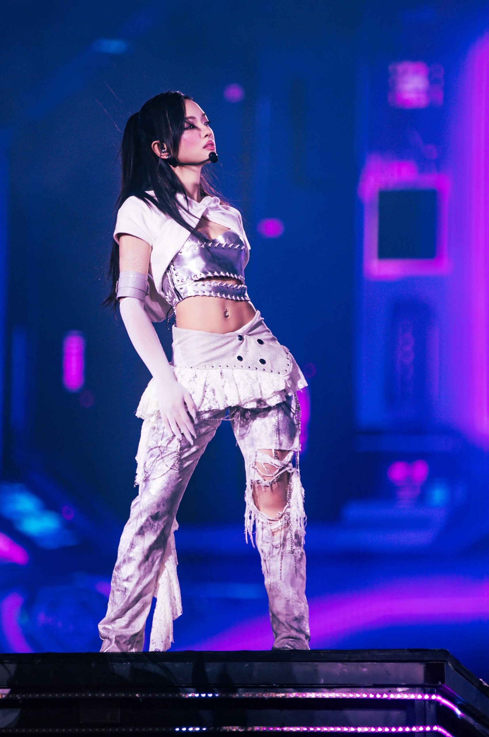 Ngay sau đó, Châu Bùi nhanh chóng chuyển sang nhịp điệu sôi động với AAA – ca khúc từng đạt Top 1 thịnh hành trên nền tảng trực tuyến. Lần đầu trình diễn trực tiếp, cô mang đến năng lượng trẻ trung, vũ đạo dứt khoát cùng sự tự tin mới mẻ trên sân khấu lớn.