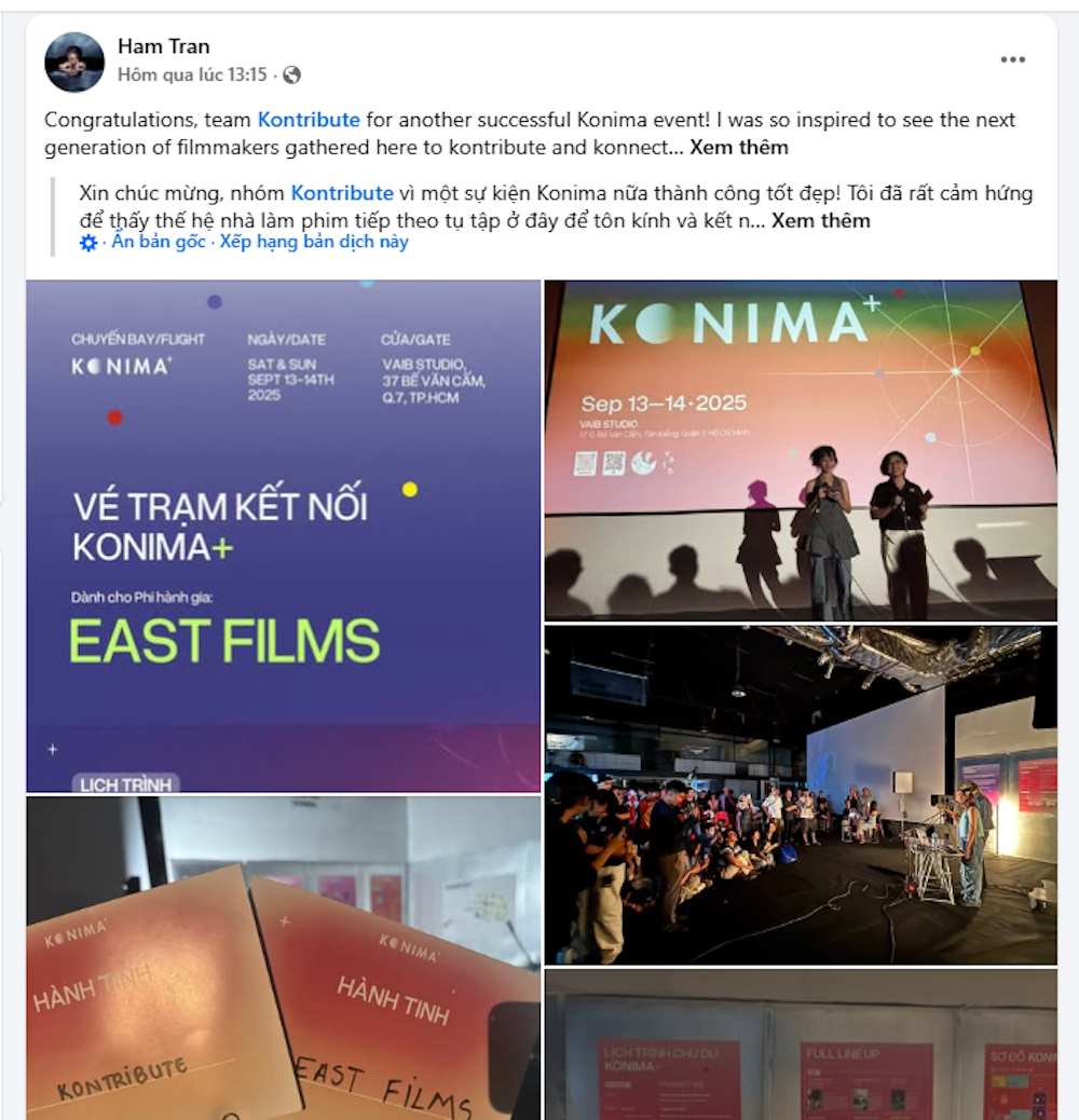 Như lời đạo diễn Hàm Trần, KONIMA+ không chỉ truyền cảm hứng cho khán giả mà còn tiếp thêm niềm tin cho chính những người đi trước, rằng một thế hệ làm phim mới đang lớn mạnh, sẵn sàng viết tiếp hành trình cho điện ảnh Việt Nam.