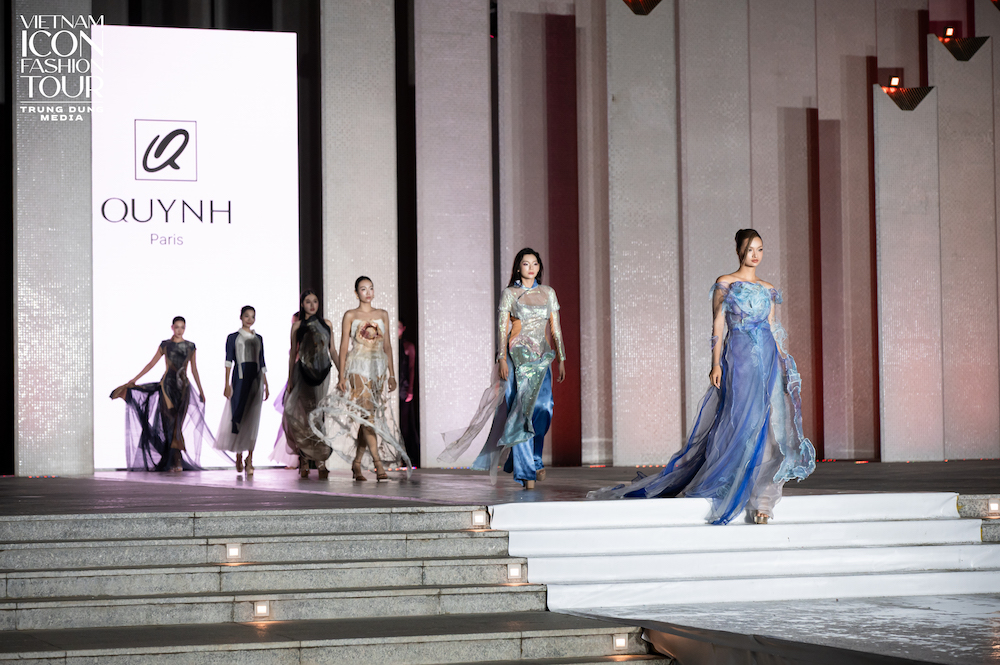 NTK Châu Báu Ngọc Ngà gây ấn tượng mạnh với BST phụ kiện “Beyond The Tide”, sử dụng các vật liệu tái sinh (Reborn Materials) như kim loại tái chế và thủy tinh tái cấu trúc từ vỏ chai, biến quá trình tái chế thành nghệ thuật kim hoàn đương đại. Tiến sĩ – NTK Quỳnh Paris khép lại đêm diễn bằng BST “Atmosphere: Khí hiện sinh”. Là nhà thiết kế tiên phong kết hợp nghệ thuật và công nghệ , Quỳnh Paris một lần nữa khẳng định triết lý “bảo tồn di sản không phải để giữ lại ký ức, mà để trao nó cho tương lai dưới hình hài mới”.