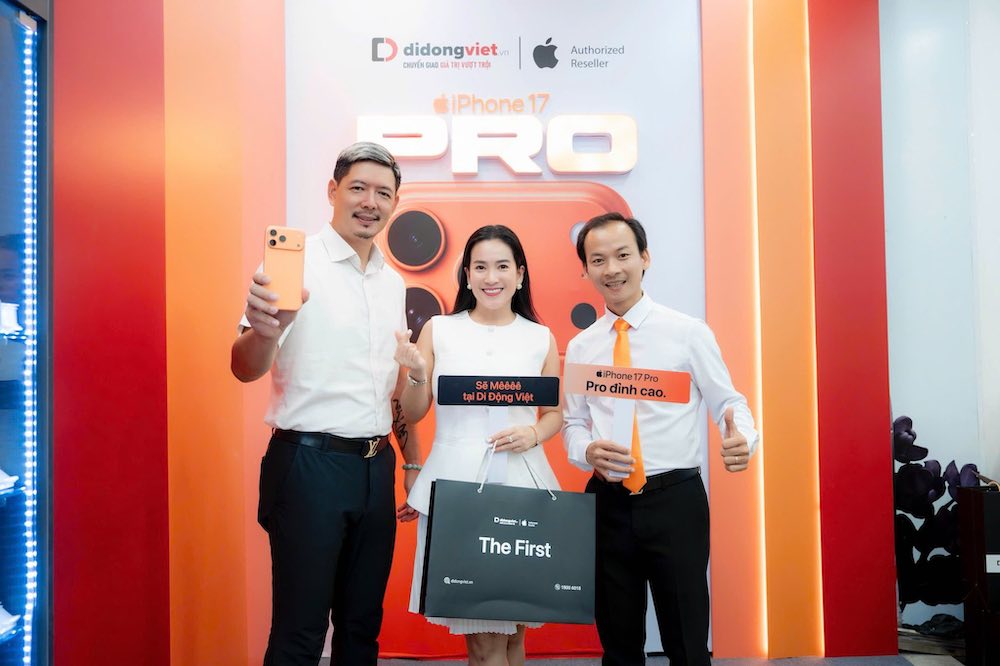 Xuyên suốt 3 ngày qua, tại cửa hàng Di Động Việt 79 Đồng Khởi (TP.HCM) nhiều nghệ sĩ Vbiz đã có mặt từ sớm để trở thành những chủ nhân đầu tiên sở hữu iPhone 17 Pro Max. Sự xuất hiện của họ nhanh chóng thu hút sự quan tâm của đông đảo người hâm mộ cũng như iFan.