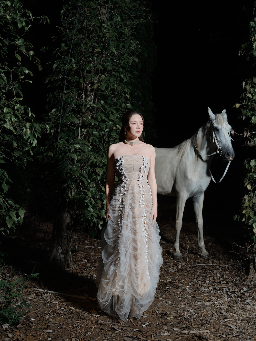 Điểm nhấn đặc biệt của bộ ảnh chính là hình ảnh ngựa – biểu tượng của năm Bính Ngọ – được Lý Nhã Kỳ đưa trực tiếp về khuôn viên biệt thự, tạo nên tổng thể vừa sang trọng, vừa đậm tinh thần Tết truyền thống.