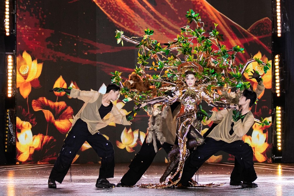 Trên sân khấu, dưới sự trình diễn của Hoa hậu Lê Hoàng Phương cùng dàn thí sinh trong top 35 Miss Grand Vietnam 2025, các thiết kế không chỉ gây ấn tượng với khán giả bởi sự đầu tư hoành tráng mà còn cho thấy được sự kỳ công, tâm huyết và thông điệp được gửi gắm. Điển hình như bộ trang phục Ong chúa là câu chuyện về sự kiên trì, đoàn kết hay 3 bộ 100 tôn vinh nét sinh hoạt giản dị của người dân Việt Nam. Còn với Tinh hoa ca dao sắc Việt, nhà thiết kế gửi gắm thông điệp sự gắn kết giữa con người và thiên nhiên. Với Xứ đảo khỉ là câu chuyện về bảo vệ môi trường trong đời sống hiện đại.